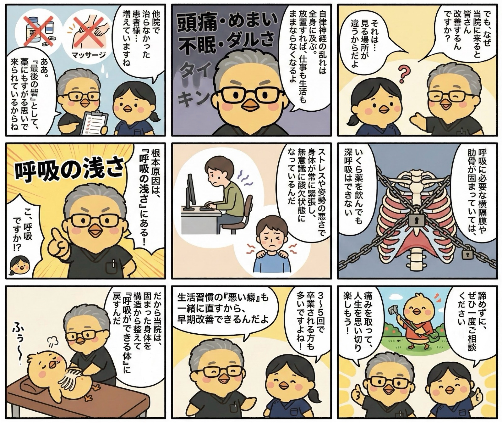 こうなると、いくら薬を飲んでも身体は酸素不足のまま。自律神経も整いません。